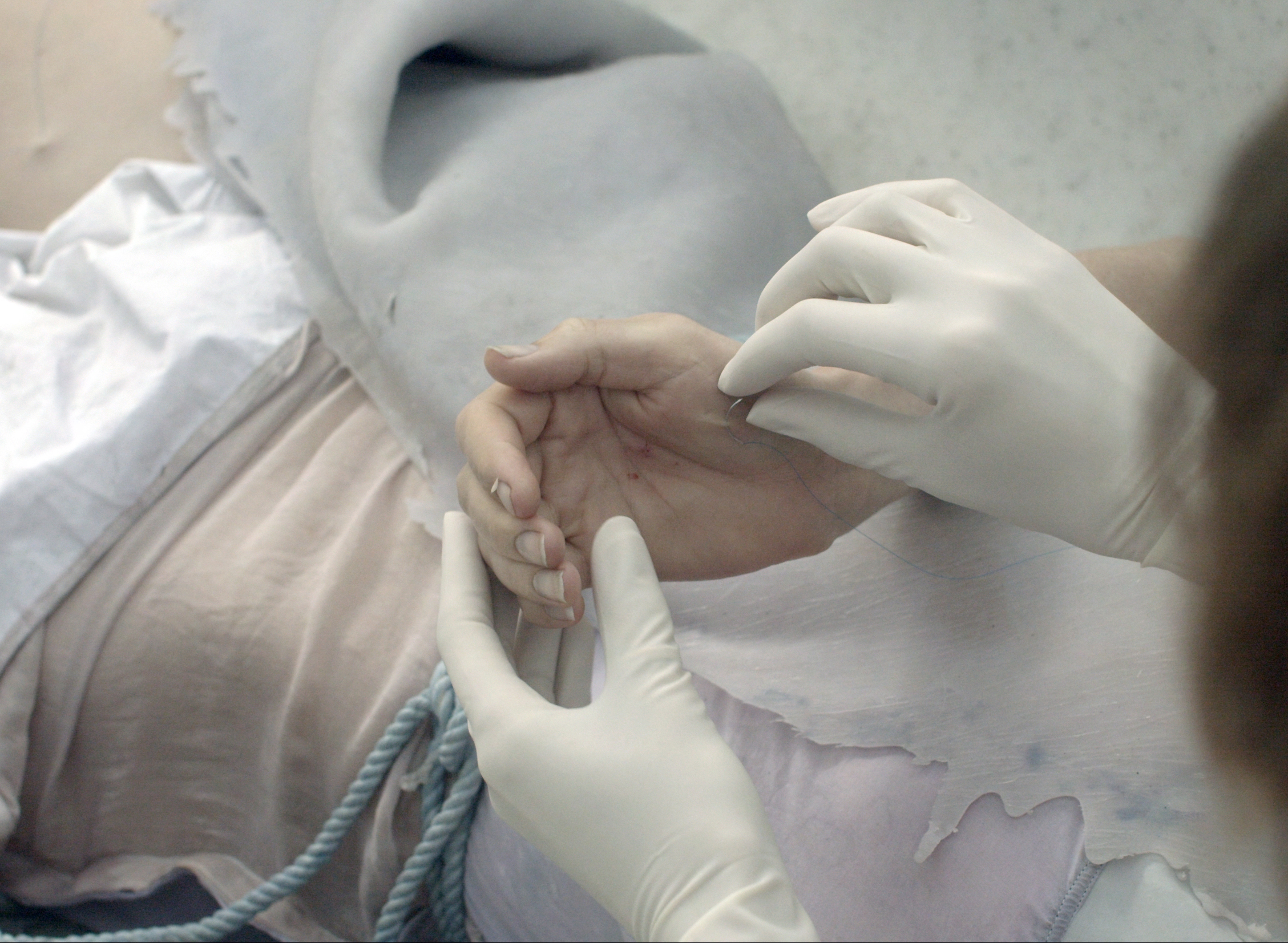 RIA is a three part video work that represents the second chapter in the SEAXBURH series. The piece reimagines the story of the Anglo Saxon Saint Aethelryth, whose body was mysteriously preserved in the landscape of the Fens in East Anglia after her burial. The sequence weaves together aspects of Austin’s research into the history and ecology of the Fenland landscape, a large area of drained wetland on the east coast of England. The videos reimagine Aethelryth’s story, depicting her encounter with a figure from the Fenland landscape of the future. Having fallen in love with the river, both figures enter its waters, discovering there the body of a very large eel who has mysteriously died.